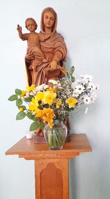 The many visitors to the Abbey were also prayed for and the needs of the parish and Archdiocese were in our thoughts. As each prayer unfolded a Sister, in turn, carried a golden rose which was placed in the beautiful Easter Garden in front of the Altar. It was a moving way to offer all that has been, to the Lord and to remember it with gratitude.
