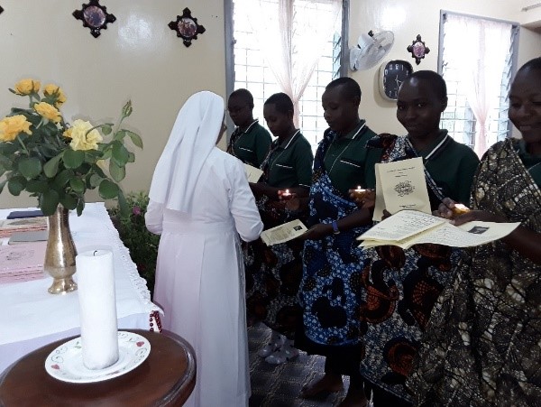 Nous étions extrêmement heureuses d'accueillir nos pré-novices après leur retraite de 8 jours le 8 juin au soir. Le 9 juin à 15h, la cérémonie d'initiation des pré-novices et des novices a eu lieu. La célébration a commencé par un accueil culturel (avec des Kanga's : un pagne avec des dessins) suivi de la prière. Nos cœurs sont remplis de gratitude envers Dieu, Le tout-puissant alors que nous nous sommes réunies dans la chapelle en tant que famille de St Joseph, en prière pour la cérémonie d'initiation de nos quatre pré-novices et des cinq candidates qui se sont joyeusement présentées pour continuer l’étape suivante de leur formation. C'est un privilège d'honorer des personnes qui ont découvert le précieux appel de Dieu et auxquelles le Seigneur tient au cœur de son être. Dieu les appelle à semer la graine de l'amour dans la Congrégation du Grand Amour.