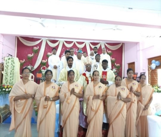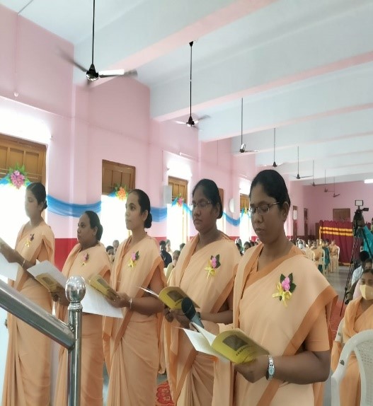 A journey of eight years was accomplished gracefully on 19th November 2021 for our five Sisters: Sr. Asha Kiran, Sr. Shirisha, Sr. Litty Therese, Sr. Rose, and Sr. Catherine. That day was a celebration of God's providential care and our deep gratitude. The celebration demonstrated, in the words of St. Paul, the richness of the grace which God has showered upon our five Sisters and their gratitude to Him was shown by professing their life-long commitment to the person of Jesus Christ. The day was pleasantly bright and cool.