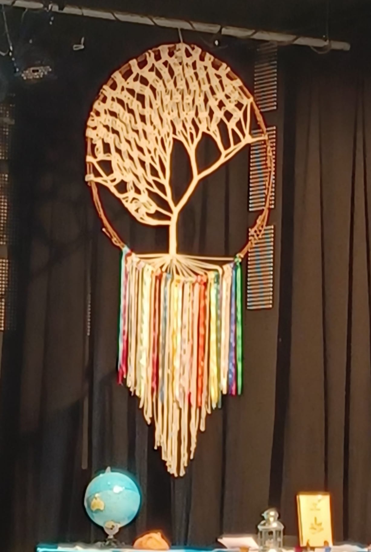 L’un des éléments visuels centraux de la célébration était un Arbre de Vie en macramé, réalisé par deux Associés Laïcs. Placée dans un attrape-rêve, cette œuvre symbolisait les relations entre sœurs et laïcs, tradition et mission, passé et avenir.